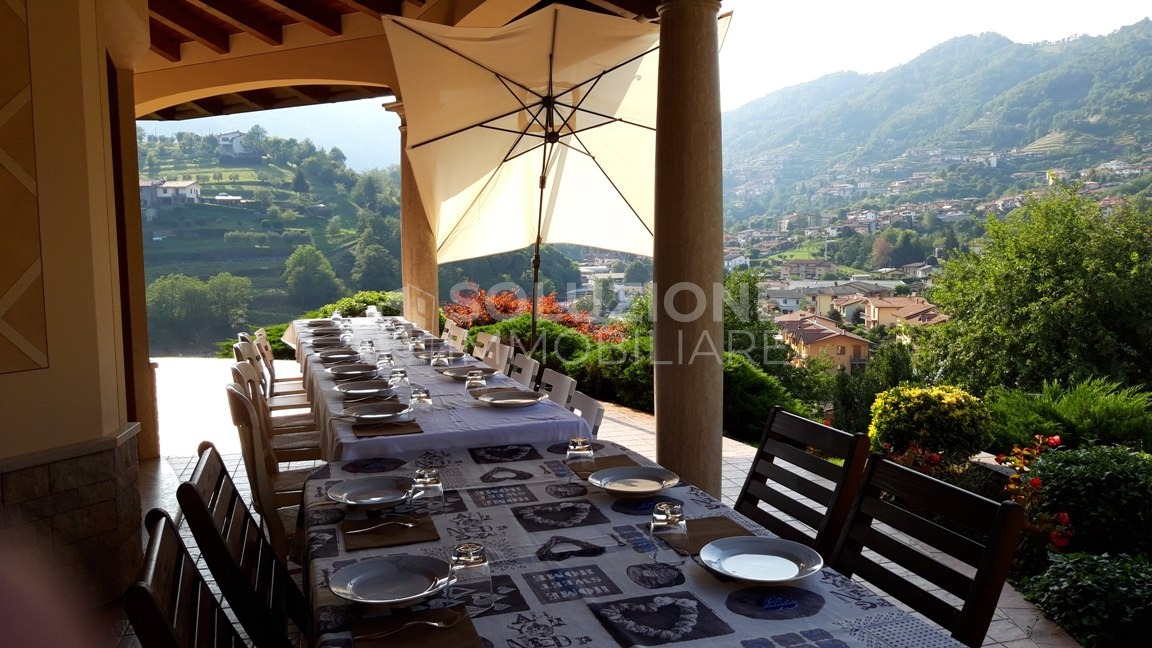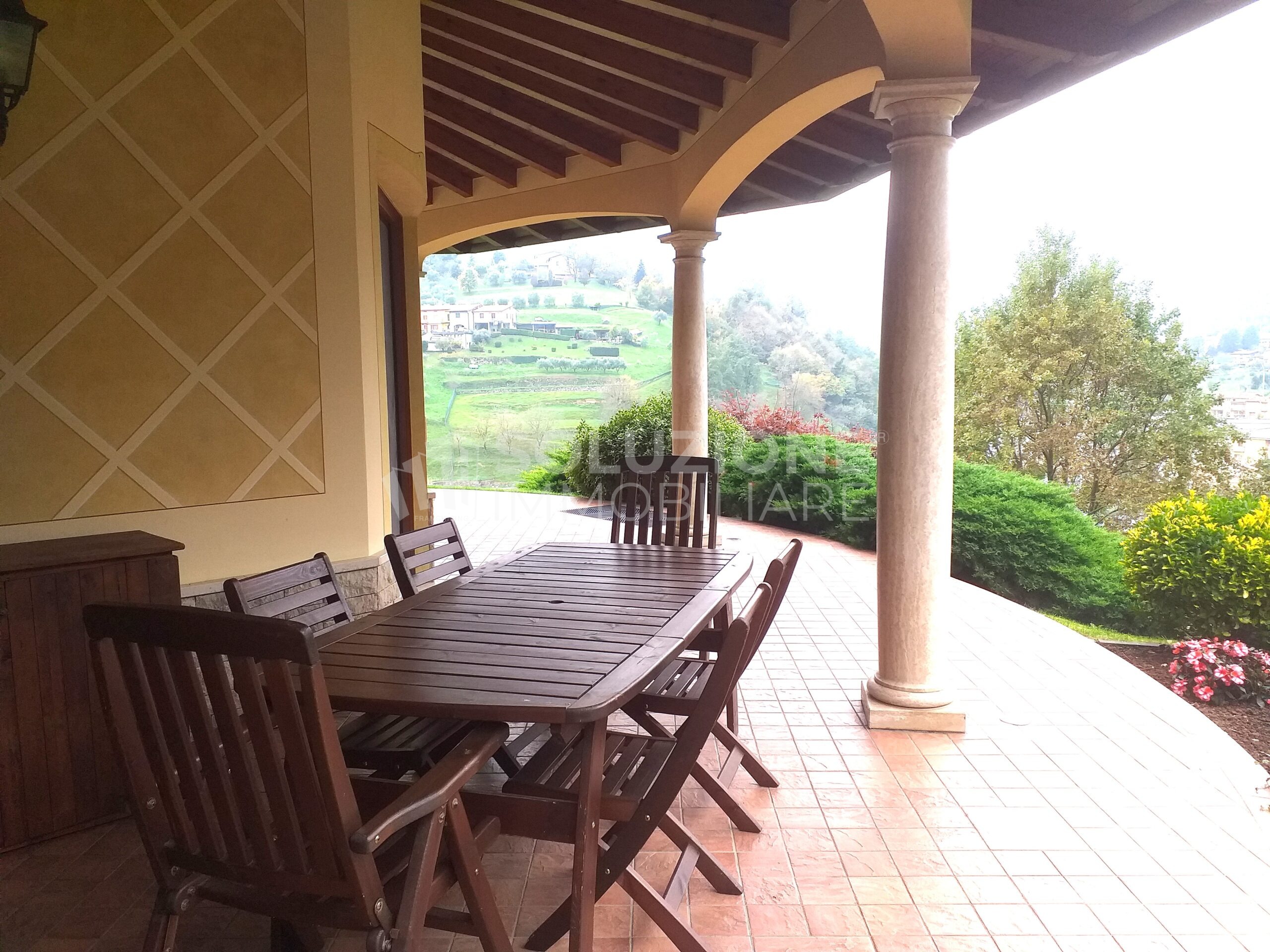 Villa Singola: Nel Cuore delle Valli Bergamasche, a soli 10 minuti dal Lago D’iseo (Sarnico) proponiamo nella tranquilla Cittadina di Foresto Sparso Lussuosa Villa Singola di mq. 396 complessivi, più mq. 54 di Portico coperto lungo quasi tutto il perimetro dell’Immobile e mq. 6.270 di Splendido Giardino piantumato e con diversi alberi da frutto. L’Entrata alla Proprietà è esclusiva, con strada interna e diversi posti auto coperti e scoperti per gli ospiti. La Villa è così disposta: Ingresso da magnifica scalinata esterna in pietra locale illuminata, che da su Portico con vista a 360 gradi su tutto il paesaggio, all’interno troviamo una zona giorno Open space suddivisa in ambienti e riscaldata da elegante e caldo Camino a pellet, Doppio Soggiorno, Sala Pranzo e Zona Lettura, Cucina Abitabile con diverse sedute, Bagno di Servizio giorno, Disimpegno Notte, tre confortevoli Camere da Letto e Bagno Padronale con doppio lavabo e Vasca angolare. Al Piano sottostante troviamo un’ampia Taverna attrezzata con cucina e stufa a legna, ideale per feste e cene con amici, Lavanderia/Stireria, Cantina ed Autorimessa Quadrupla con basculante automatizzata. Le finiture interne sono state seguite direttamente dalla Proprietà e troviamo porte interne in noce nazionale, Serramenti in rovere Scorrevoli con doppio vetro, Zanzariere, Climatizzazione, Aspirazione Centralizzata, Antifurto Volumetrico e Perimetrale, Impianto Fotovoltaico da 6 KW, Videosorveglianza e Irrigazione con acqua di sorgente di proprietà. Inutile far notare che il RAPPORTO Qualità/Prezzo è a dir poco Vantaggioso, ma per poter comprendere al meglio la potenzialità dell’Immobile bisogna vederlo di persona. Si prega di chiamare solo se interessati veramente!!!! No Perditempo!!!